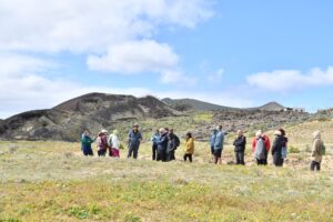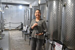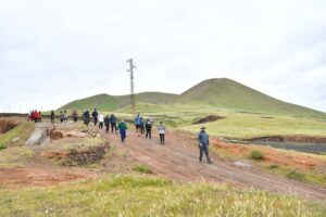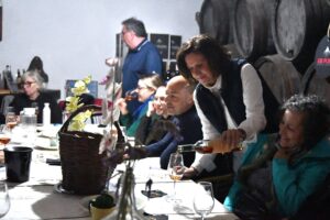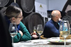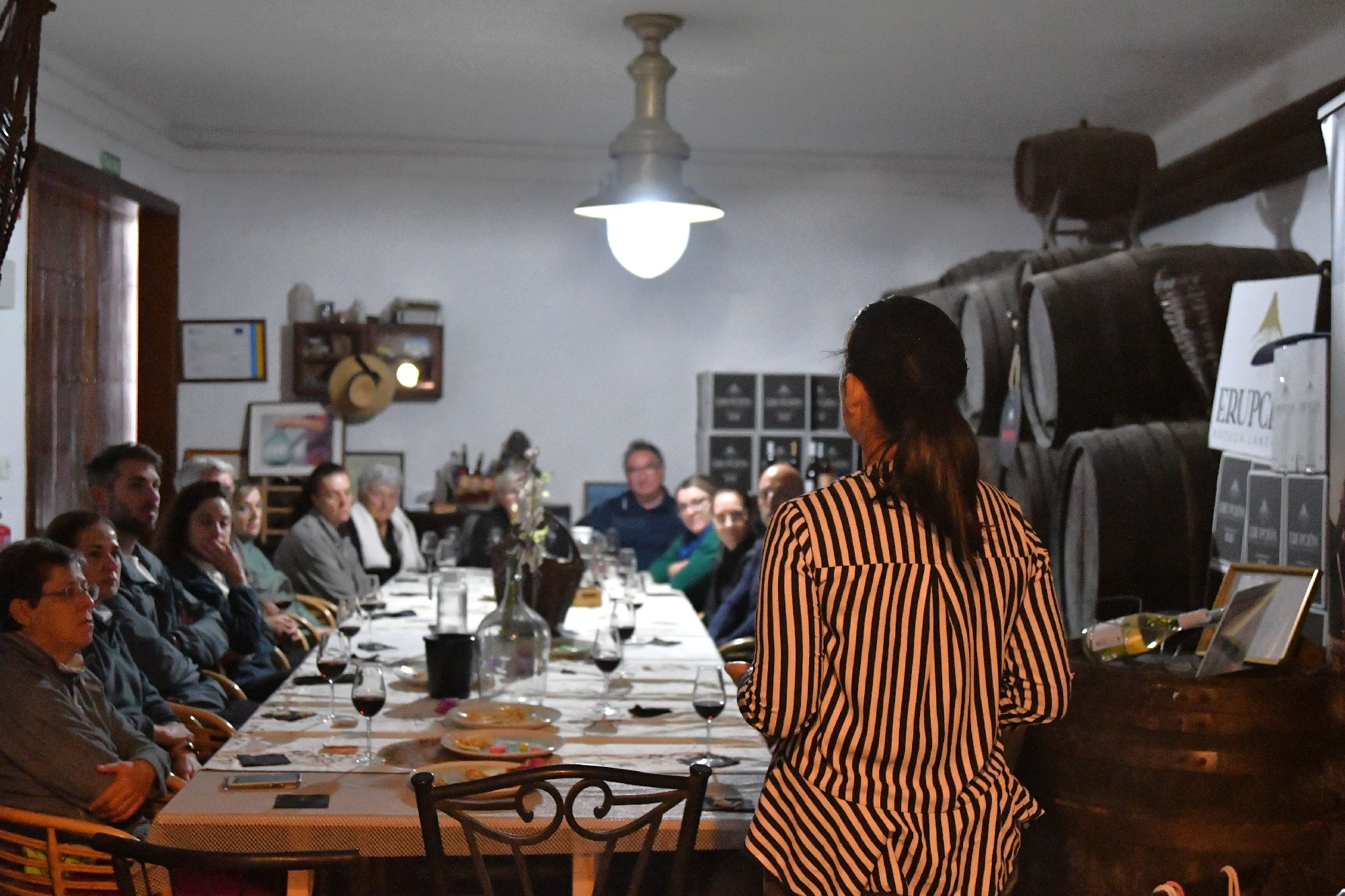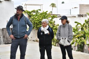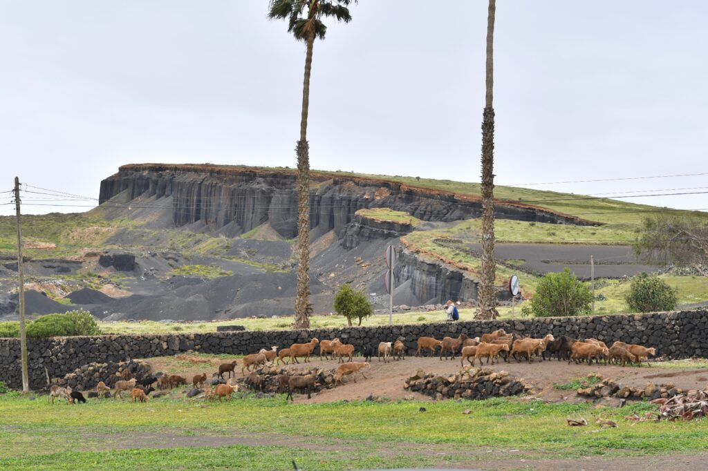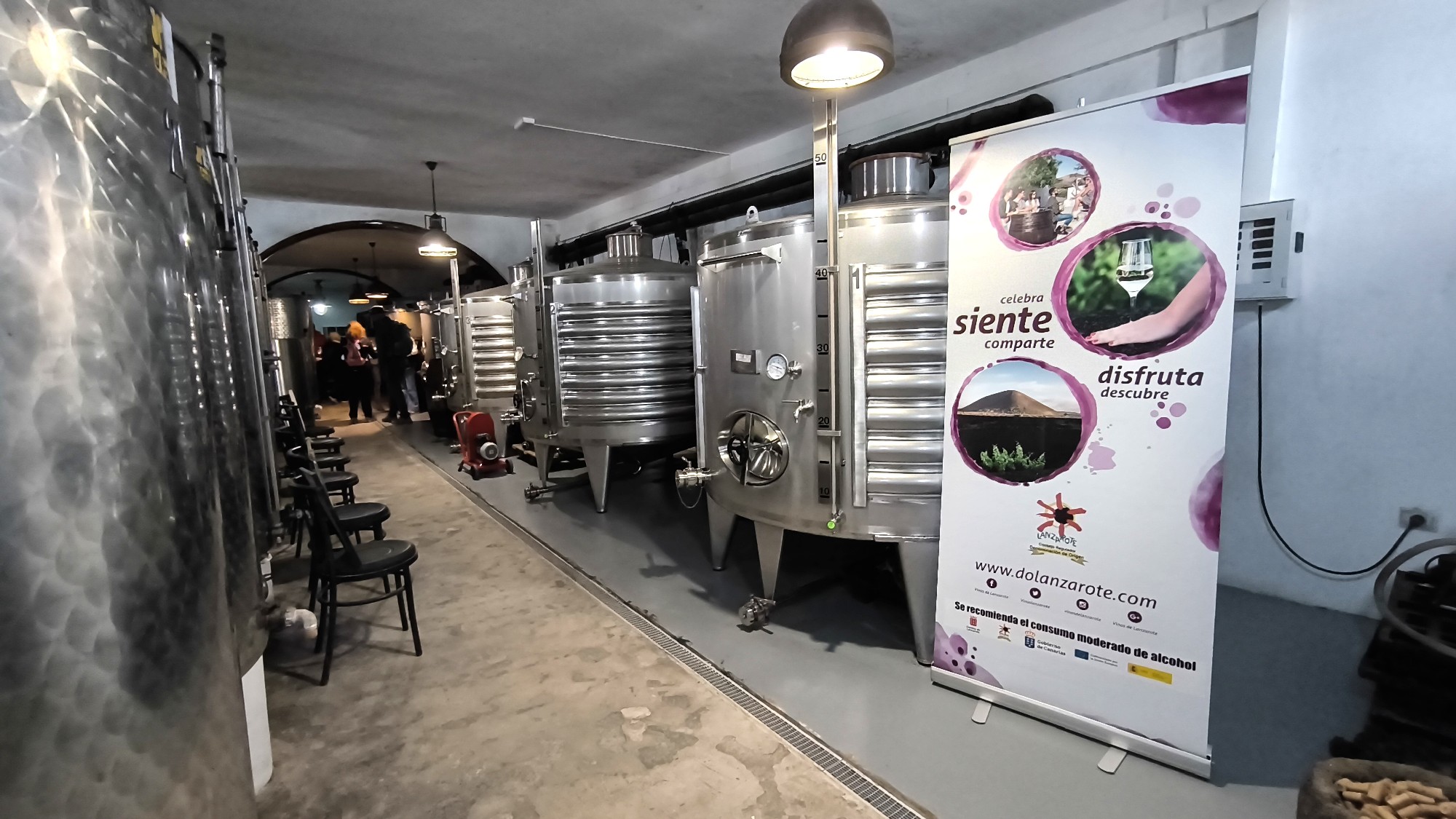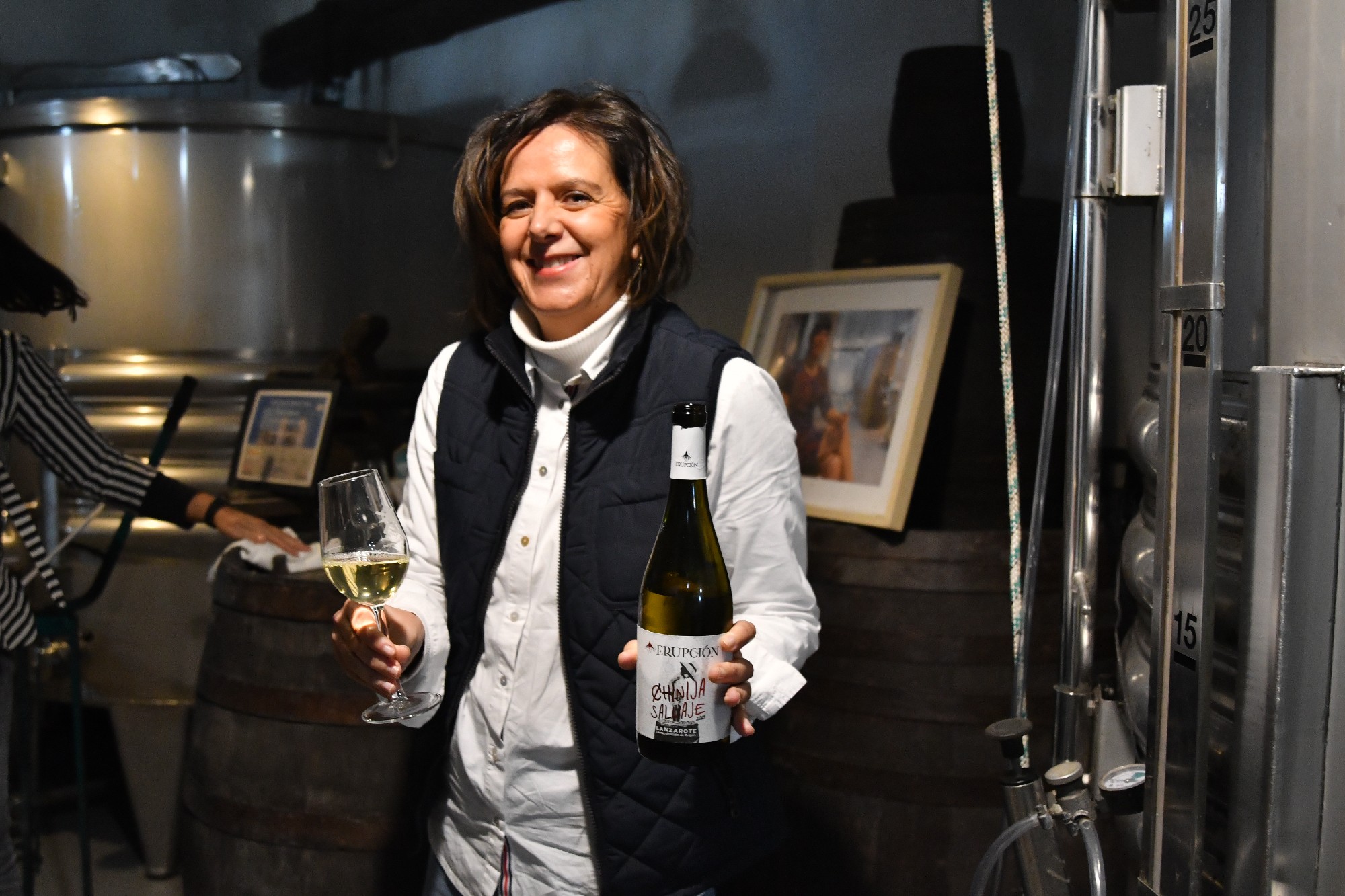 La ruta nos llevó también por Tiagua hasta llegar a El Jable, donde pudimos observar de cerca el último volcán que tuvo actividad en Lanzarote en 1824. Desde este punto tan simbólico pusimos rumbo a nuestro destino final: Bodega Erupción. Allí nos esperaba Amor López, enóloga y directora de este proyecto que representa un bonito relevo generacional. Con ella descubrimos más sobre su visión de la elaboración de vinos, la viticultura en la isla y los varietales autóctonos con los que da forma a sus joyitas enológicas. Y como toda buena ruta merece un gran final… llegó el momento de la cata 🍷
