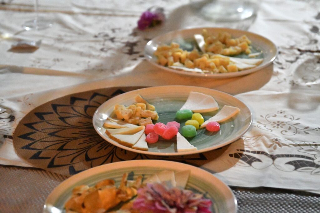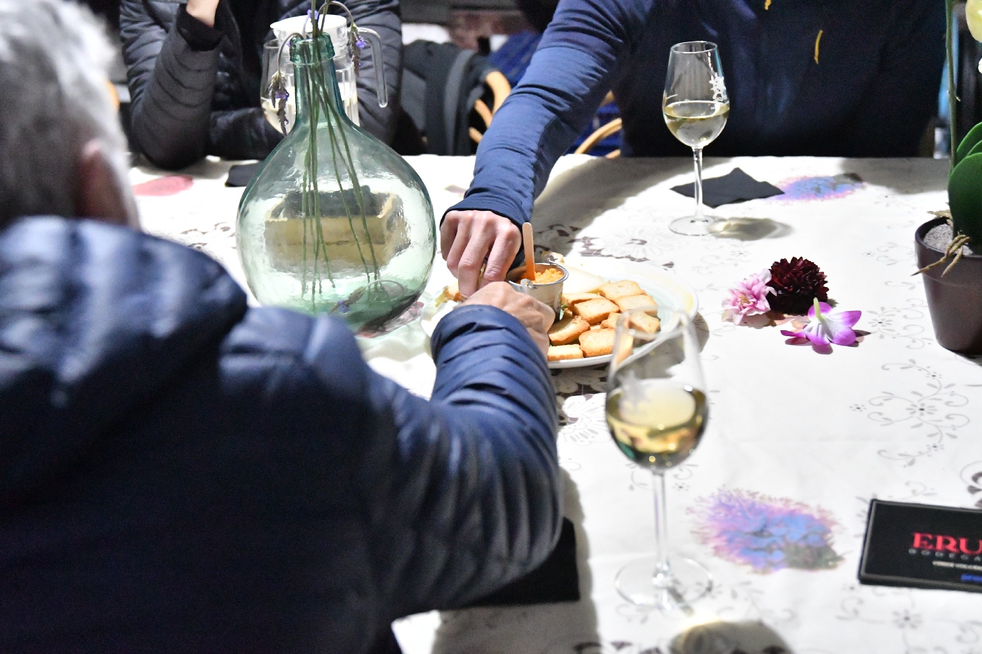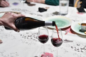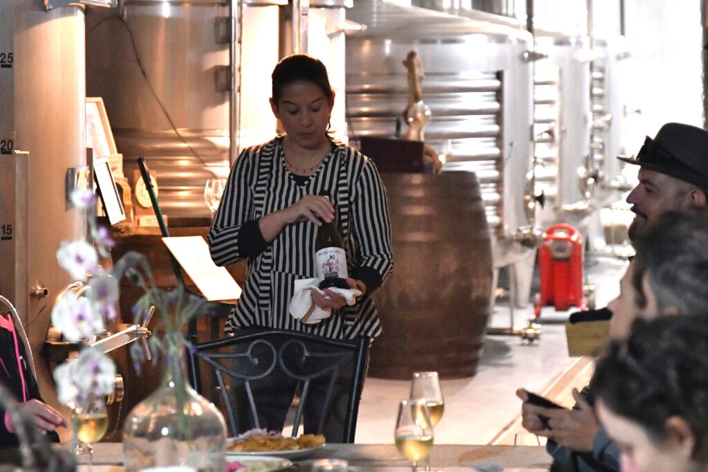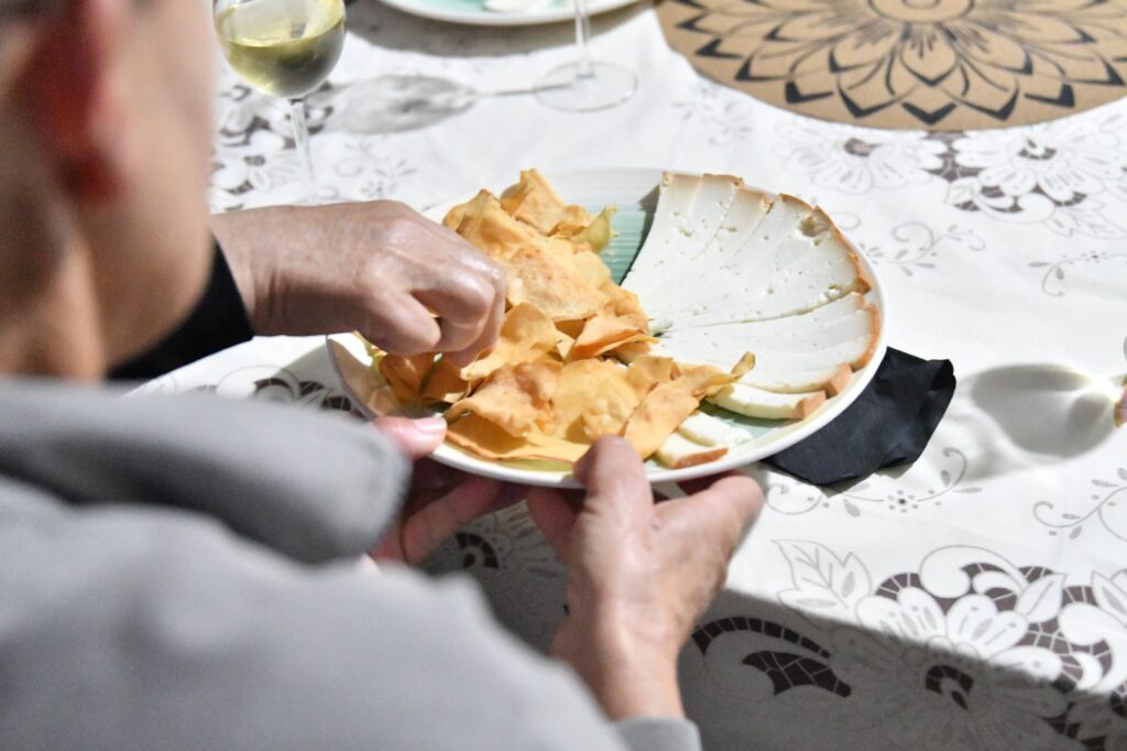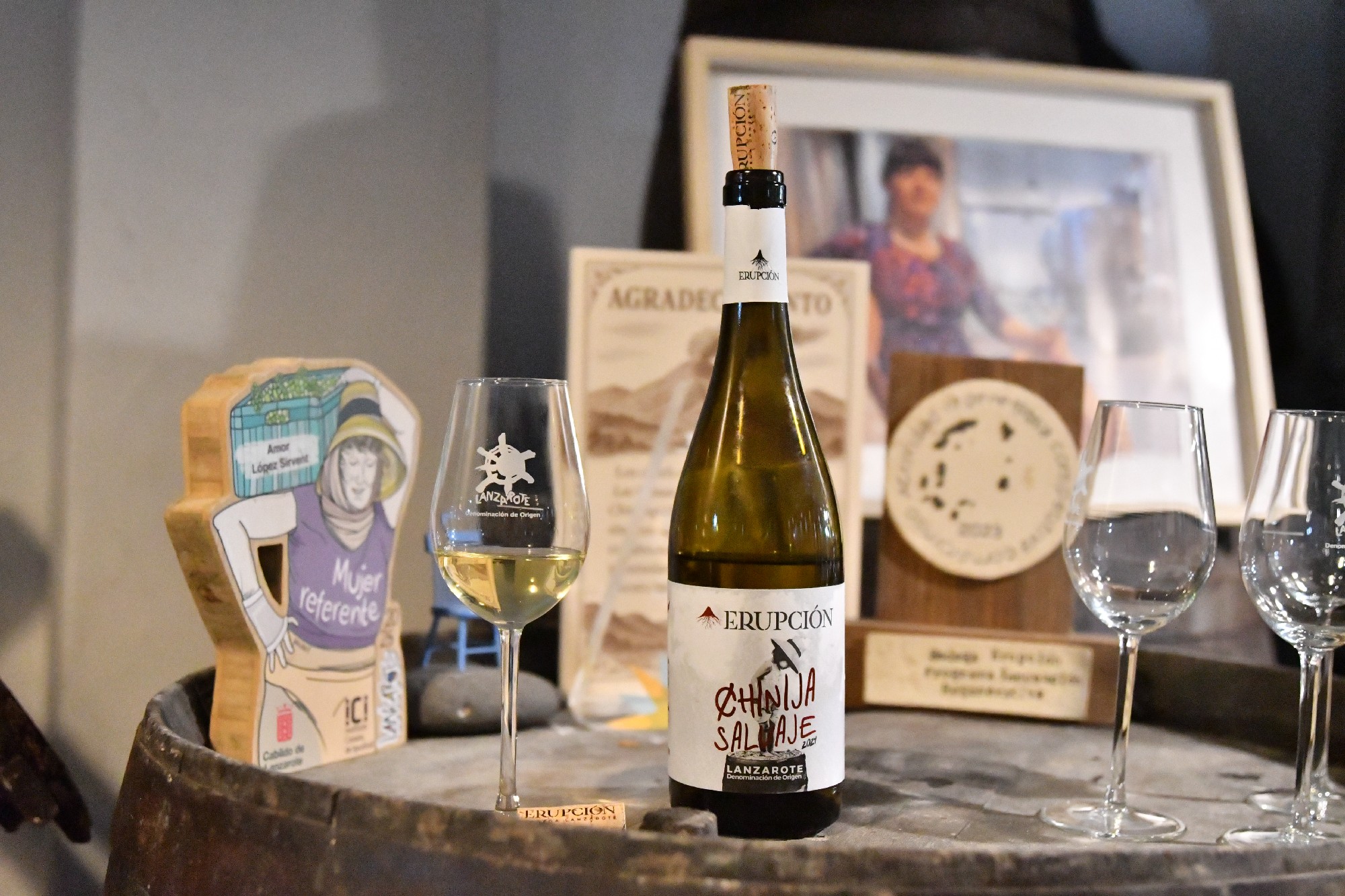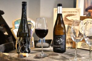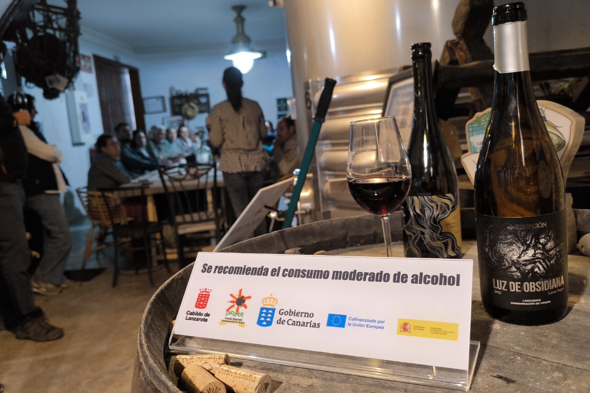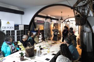 Degustamos tres de sus referencias: Chinija Salvaje, Luz de Obsidiana y Piroclastos, acompañadas de una selección de quesos. Compartimos brindis, rodeados de barricas y buenas conversaciones.