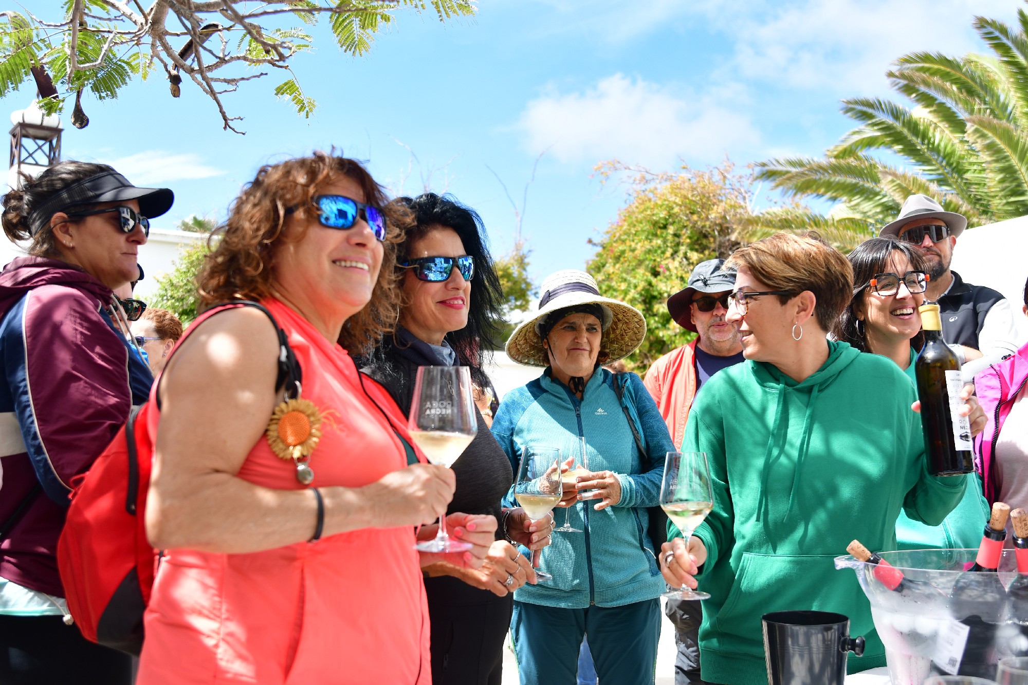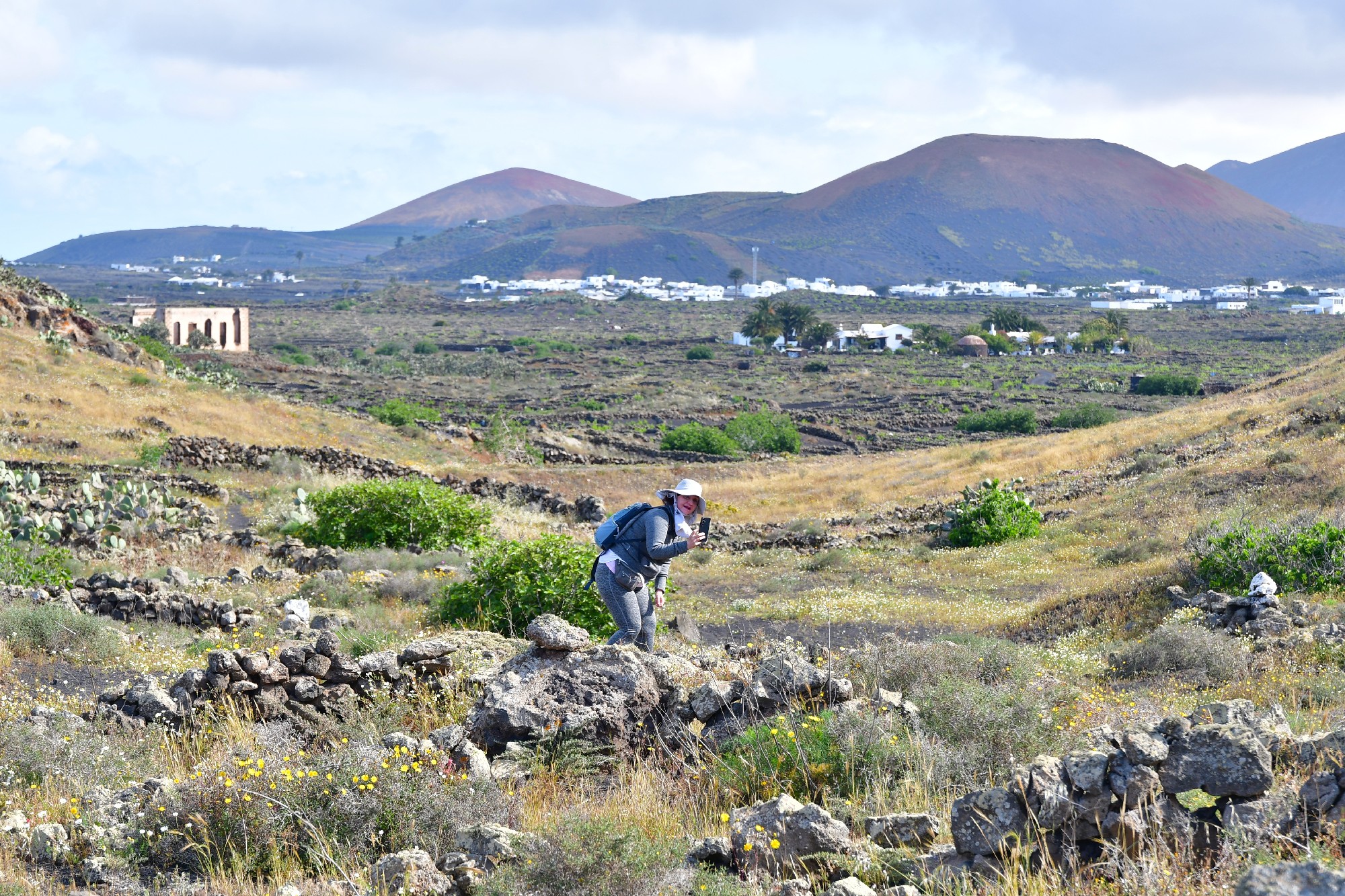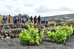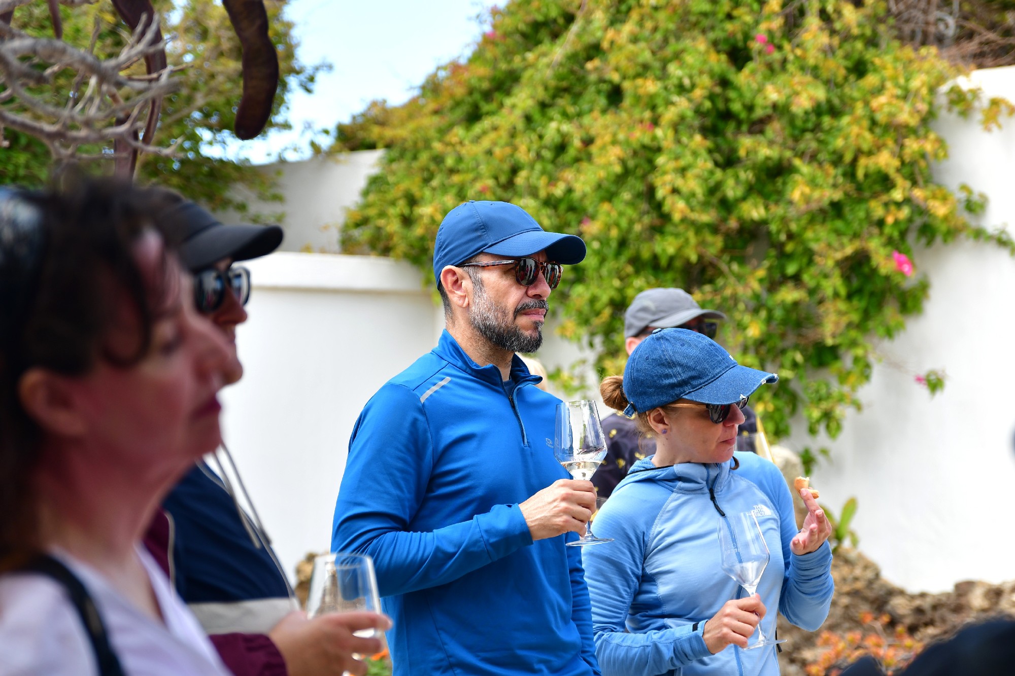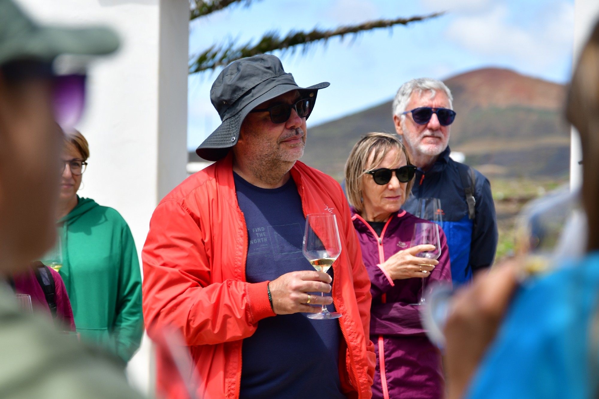 De la mano de Nacho Romero de Senderismo Lanzarote, partimos desde Las Huertas y El Oratorio para adentrarnos en un entorno donde el trabajo del hombre y la fuerza de la naturaleza se funden en perfecta armonía. Ascendimos hasta el Lomo de Tesa, un punto privilegiado desde el que contemplar el paisaje vitícola de Lanzarote. Durante los diferentes senderos pudimos observar dos tipos de cultivos de parras predominantes: en hoyos y en zanjas, y vimos las viñas muy frondosas  con los racimos brotando en su primera fase.