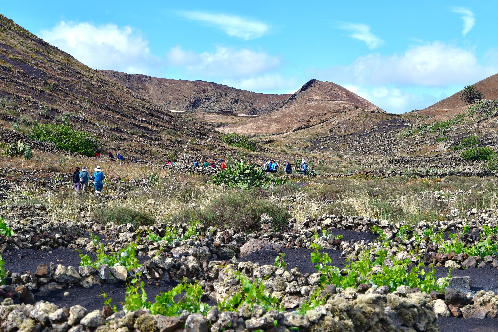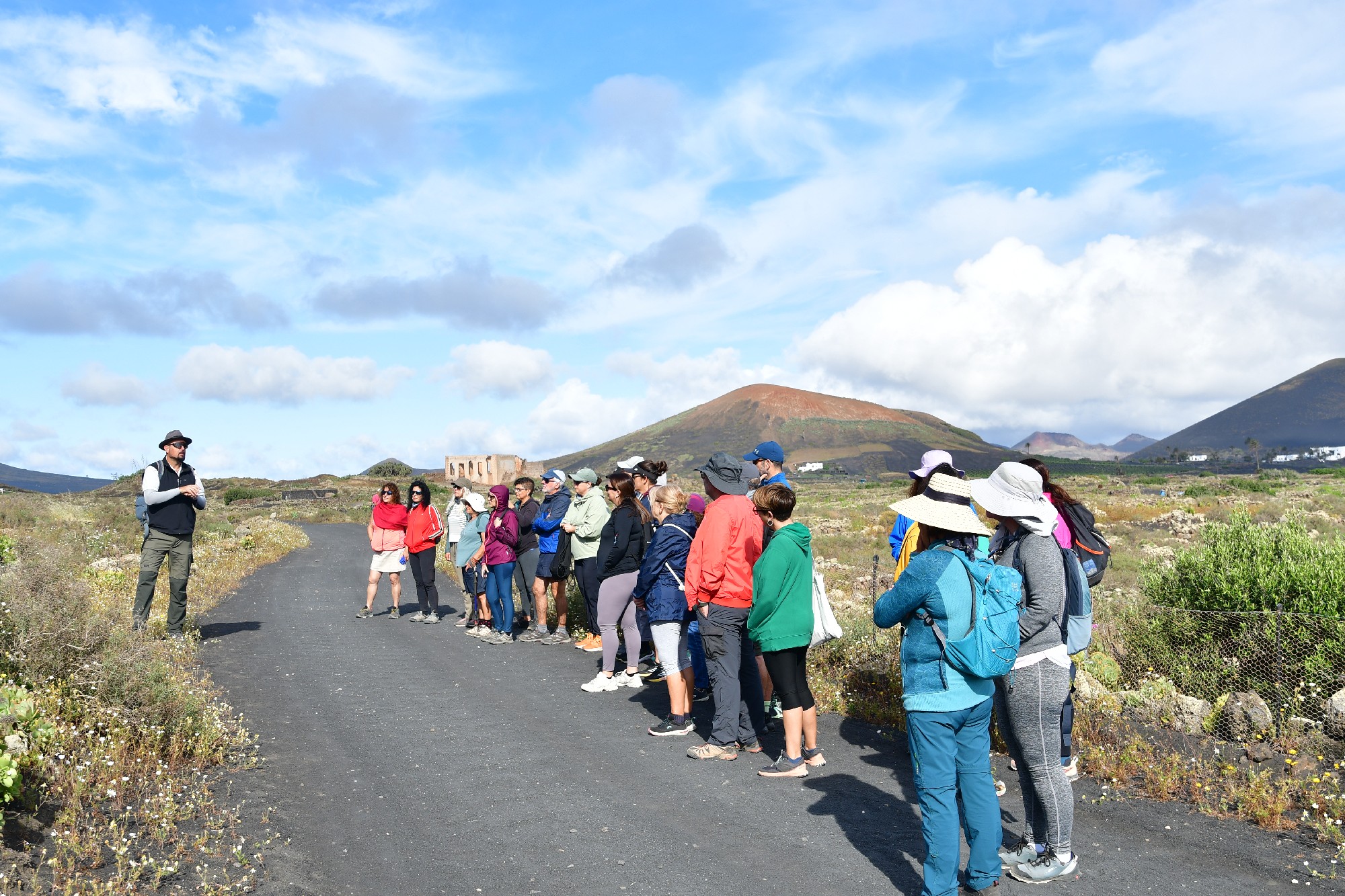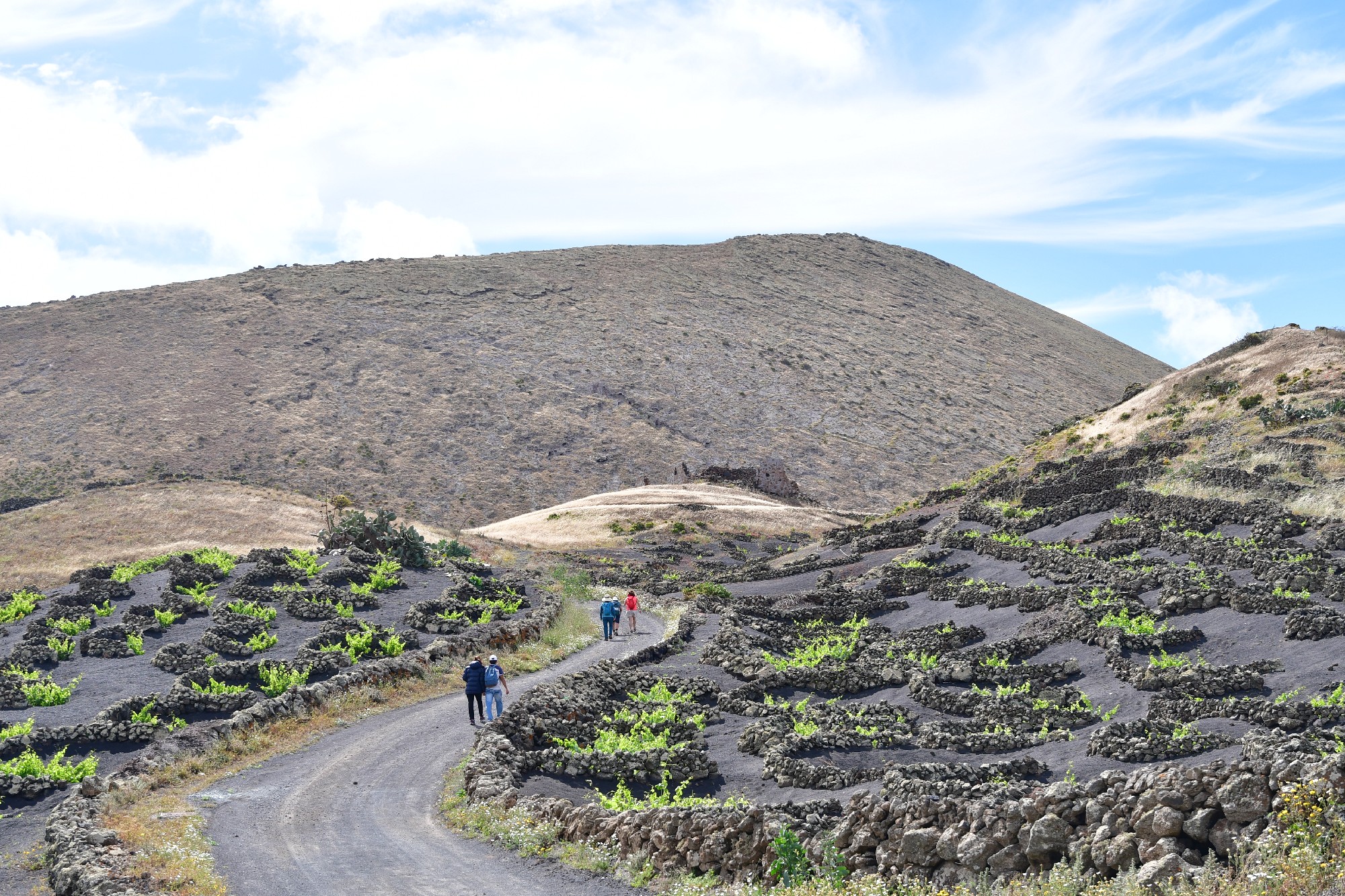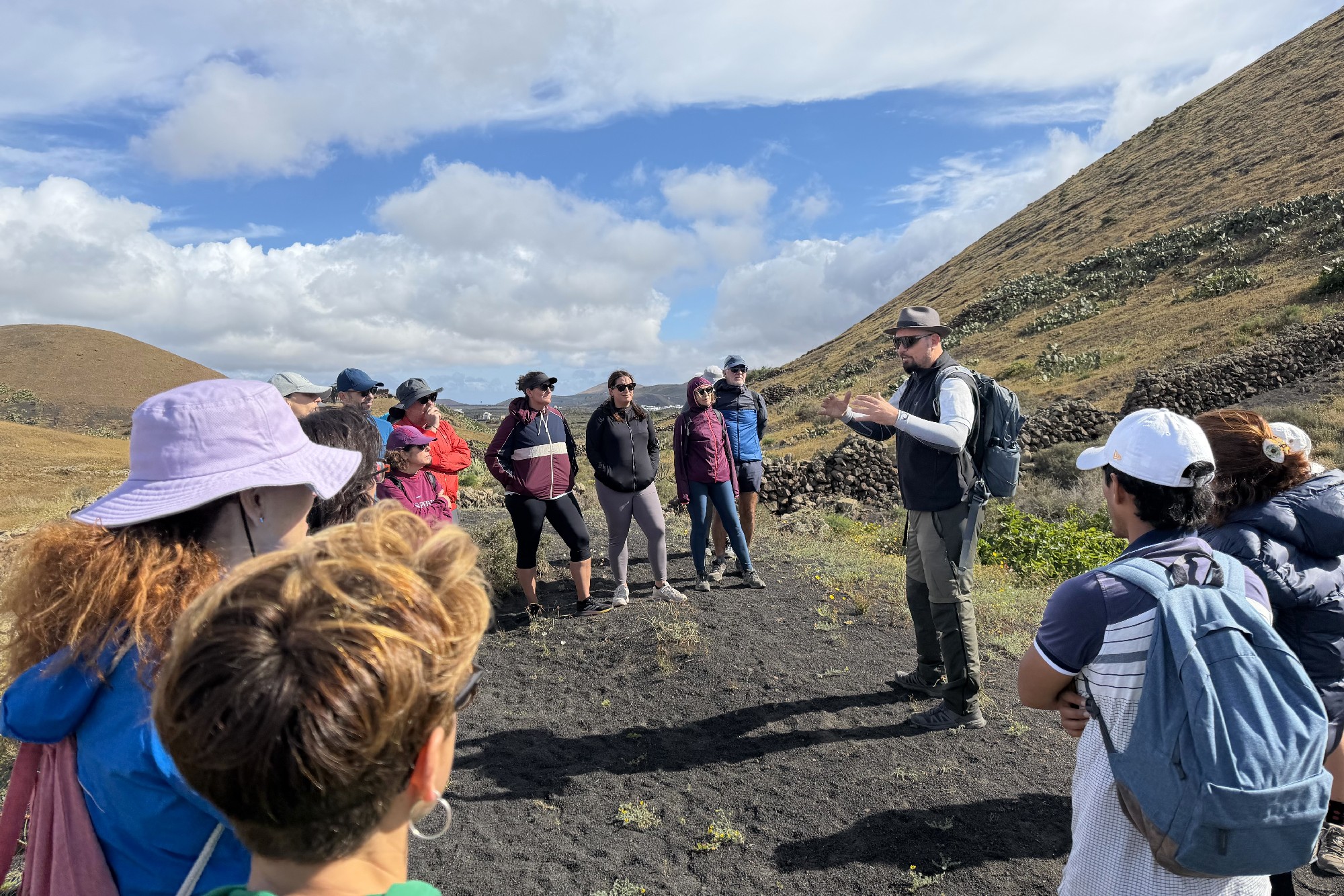 De la mano de Nacho Romero de Senderismo Lanzarote, partimos desde Las Huertas y El Oratorio para adentrarnos en un entorno donde el trabajo del hombre y la fuerza de la naturaleza se funden en perfecta armonía. Ascendimos hasta el Lomo de Tesa, un punto privilegiado desde el que contemplar el paisaje vitícola de Lanzarote. Durante los diferentes senderos pudimos observar dos tipos de cultivos de parras predominantes: en hoyos y en zanjas, y vimos las viñas muy frondosas  con los racimos brotando en su primera fase.
