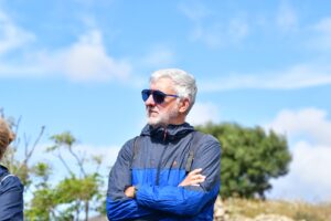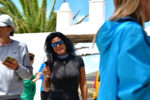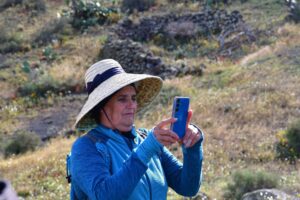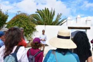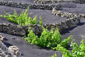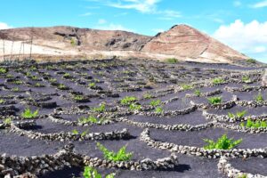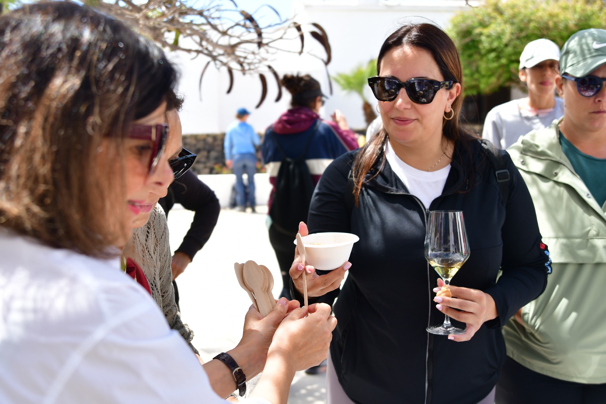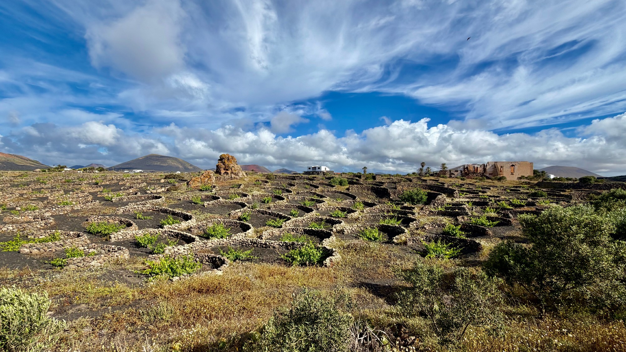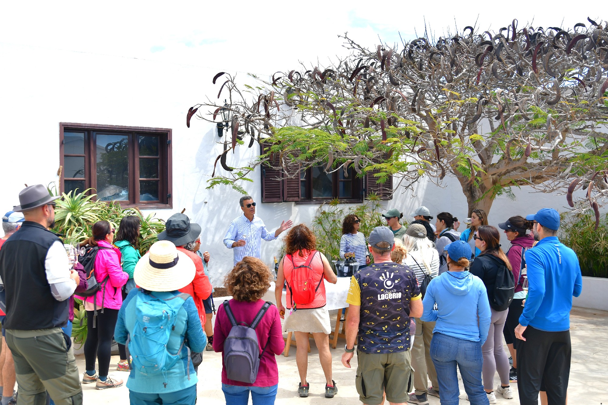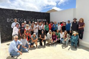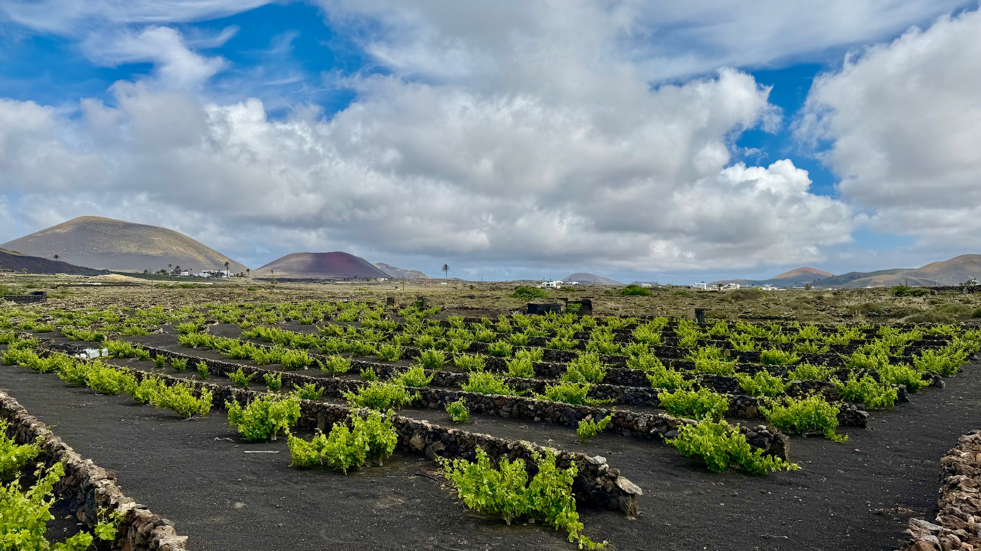 De la mano de Nacho Romero de Senderismo Lanzarote, partimos desde Las Huertas y El Oratorio para adentrarnos en un entorno donde el trabajo del hombre y la fuerza de la naturaleza se funden en perfecta armonía. Ascendimos hasta el Lomo de Tesa, un punto privilegiado desde el que contemplar el paisaje vitícola de Lanzarote. Durante los diferentes senderos pudimos observar dos tipos de cultivos de parras predominantes: en hoyos y en zanjas, y vimos las viñas muy frondosas  con los racimos brotando en su primera fase.