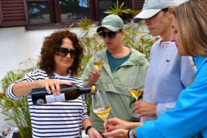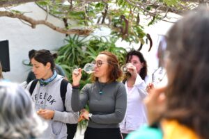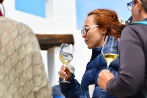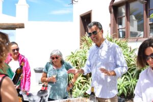 Después, en su patio interior, catamos tres referencias: Malvasía Volcánica 2025, Malvasía Volcánica 2023 —donde pudimos apreciar los matices que aporta la guarda en color, aromas y sabor— y el tinto Quintana 2024.